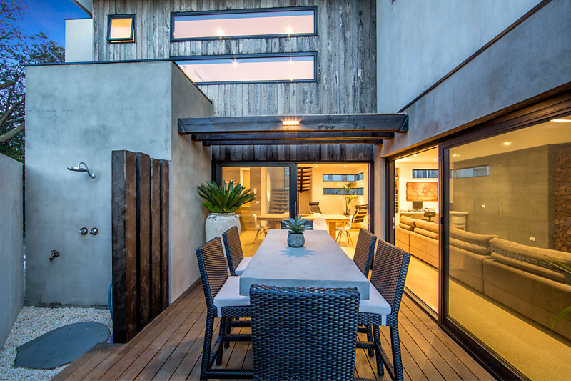 - Private decked outdoor entertaining area including surround sound speakers and outdoor hot and cold shower, beach access down a private landscaped pathway with a coded gate for security