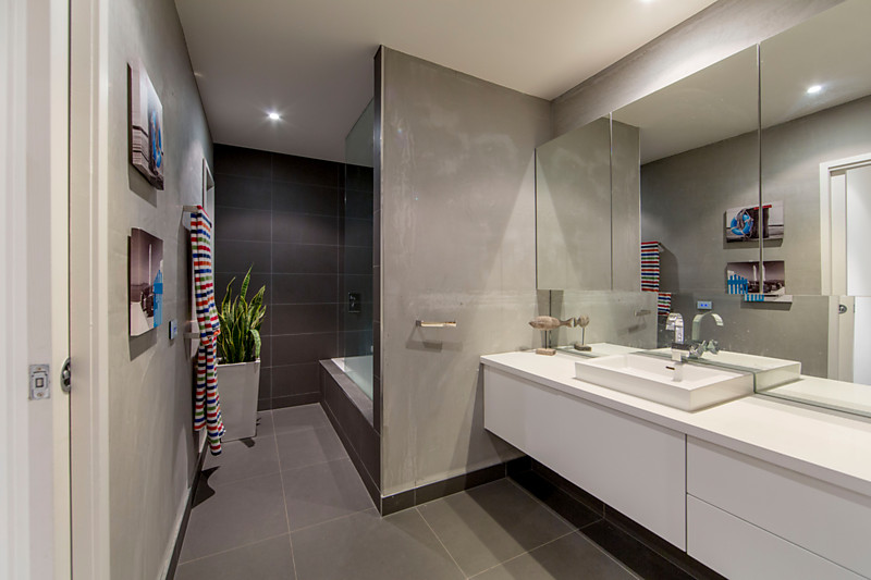 - The Family bathroom with 2 Pac cabinetry and bath